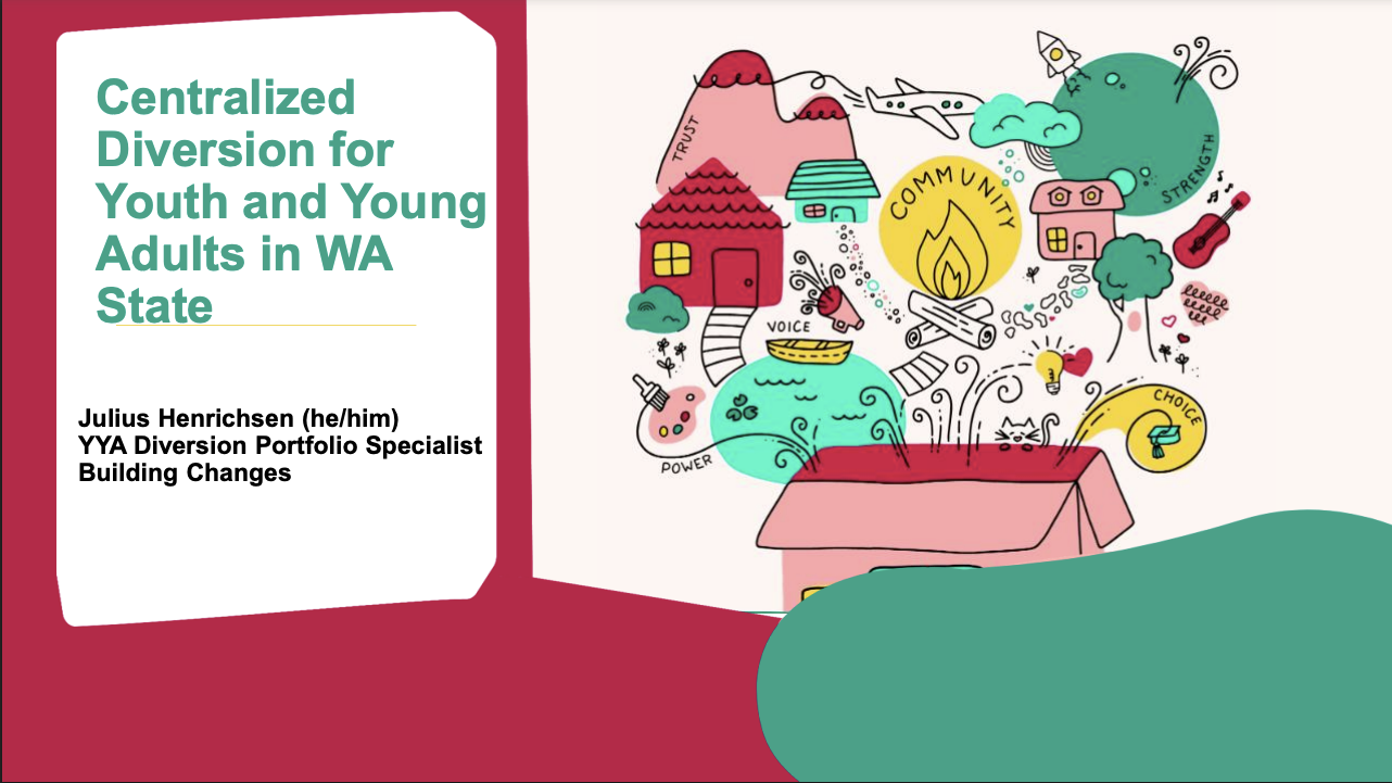 Julius Henrichson from Building Changes joined us for the last half of the meeting to share a workshop on the Centralized Diversion Model to prevent youth homelessness in our state. Some key takeaways include: